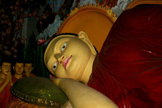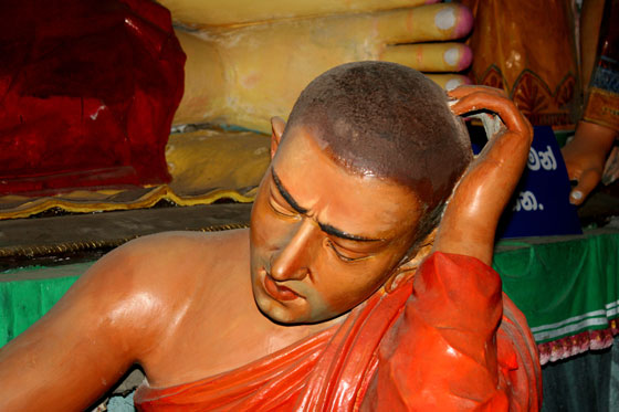 In this atmosphere blessed by eternal love, compassion and lively colours, I quietly listend and learnt that when the feet of Lord Buddha are not aligned, this means that he is sleeping. On the opposite, when depicted with his feet perfectly aligned, this indicates that he reached the Nirvana.