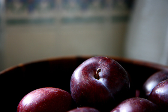 400 g of big, firm, sweet red plums, pitted and sliced lengthwise